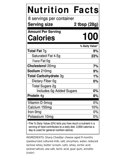 We take our finest aged sharp cheddar, celebrated for its unmistakable tangy bite, and whip it into a perfectly soft, spreadable texture. This simple yet profound recipe is a heartfelt expression of our family’s dedication to creating high-quality, memorable cheeses meant to be at the heart of your most cherished moments.