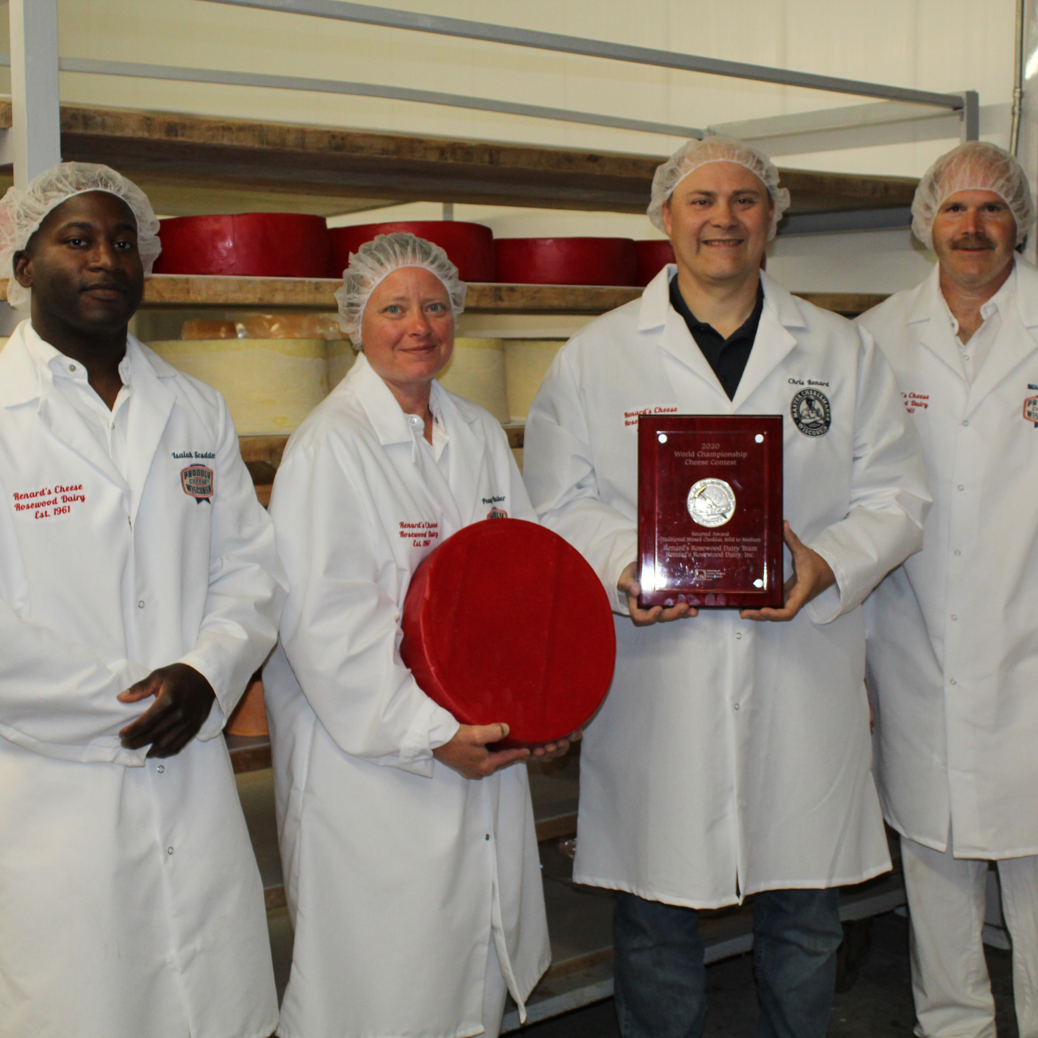 At the age of 13, Howard Renard began helping his father, a farmer and milk hauler. For 20 years, Howard learned the art and science of the cheesemaking trade at Door County Dairies producing Colby and his specialty, Cheddar, before opening his own manufacturing plant— Rosewood Dairy—in Algoma in 1961. His son Gary Renard purchased Cloverleaf Dairy in 1966, which combined with Rosewood Dairy in 1975. The Cloverleaf Dairy factory was turned into Renard's Cheese Store.