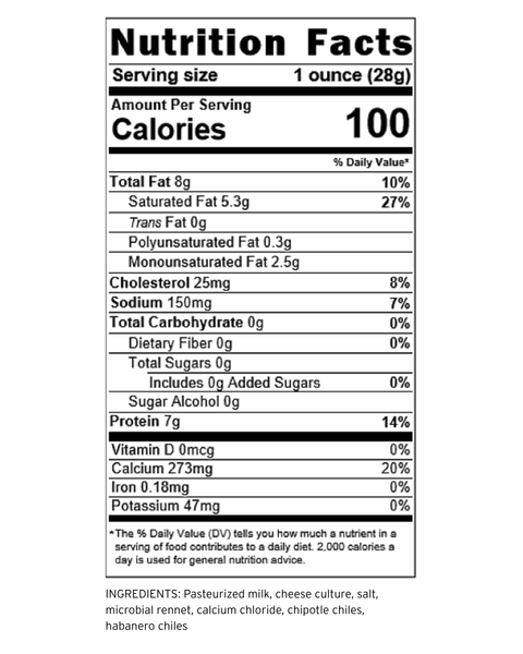 We begin with our classic Monterey Jack, beloved for its mild, buttery taste and exceptionally smooth, creamy texture. We then infuse it with smoky, earthy chipotle peppers, creating a deep and savory cheese that warms you from the inside out. This flavorful blend is a beautiful reflection of our family’s tradition of crafting unique, high-quality cheeses for your family to enjoy.