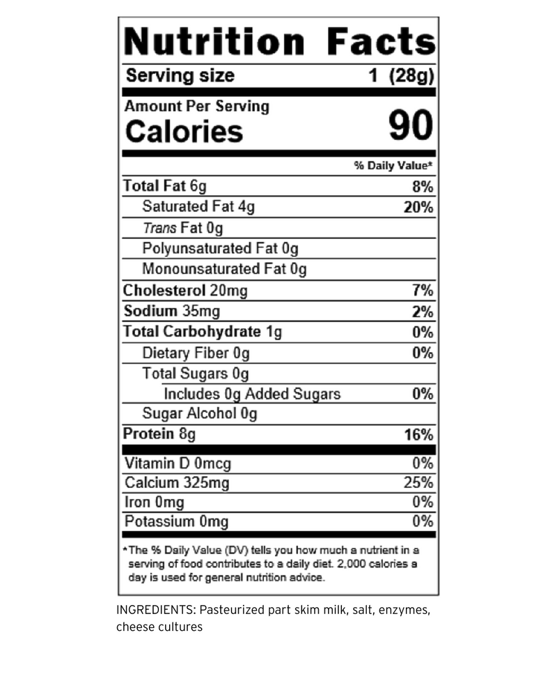An Elegant and Versatile Choice: This beautiful cheese is perfect for slicing onto sandwiches or enjoying with crisp crackers and fresh fruit like pears or grapes. It melts smoothly, making it a lovely addition to omelets or light sauces. Pair it with a glass of Riesling or a light-bodied pilsner.